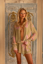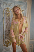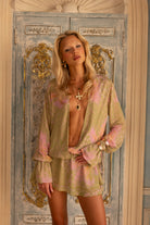 Awash in a mesmerising palette of lime green, cream, and rose pink, this piece channels untamed energy through a painterly lens, vibrant, romantic, and unmistakably bold.