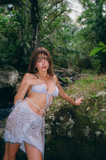 Float between myth and motion in the Celestia Muse Skirt — a sheer wrap dripping in hand-beaded sea motifs, stitched one by one by artisans. Glistening starbursts, coral fronds, and soft shimmer create a liquid light effect as you move. Finished with a soft side-tie closure and subtle fringe for underwater goddess energy, above or below the tide.