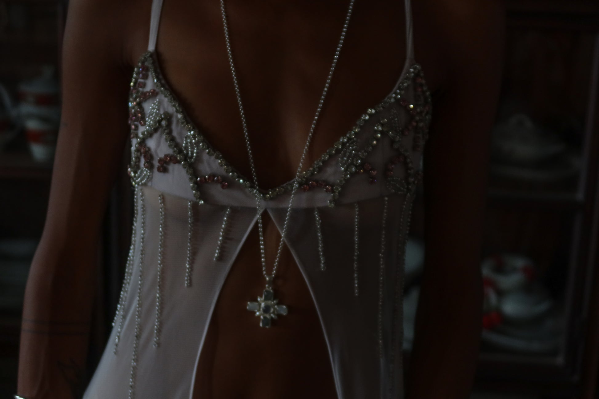 Emerge from the waves like the goddess herself in our “Aphrodite’s Wake” co-ord set. Breathtaking sensuality and craftsmanship, echoing the shimmer of the sea and the power of mythology.