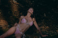 A siren’s essential — low-rise, tie-side, and dripping in deep-sea fantasy. Hand-embellished with gleaming coral-inspired embroidery. The soft blush tone contrasts with the bold Fuchsia coral motifs, features seashell charms that dance with your every move a look that’s equal parts delicate and daring. Crafted for golden hour escapes and saltwater seduction. Designed for dreamers, wanderers, and modern mermaids alike